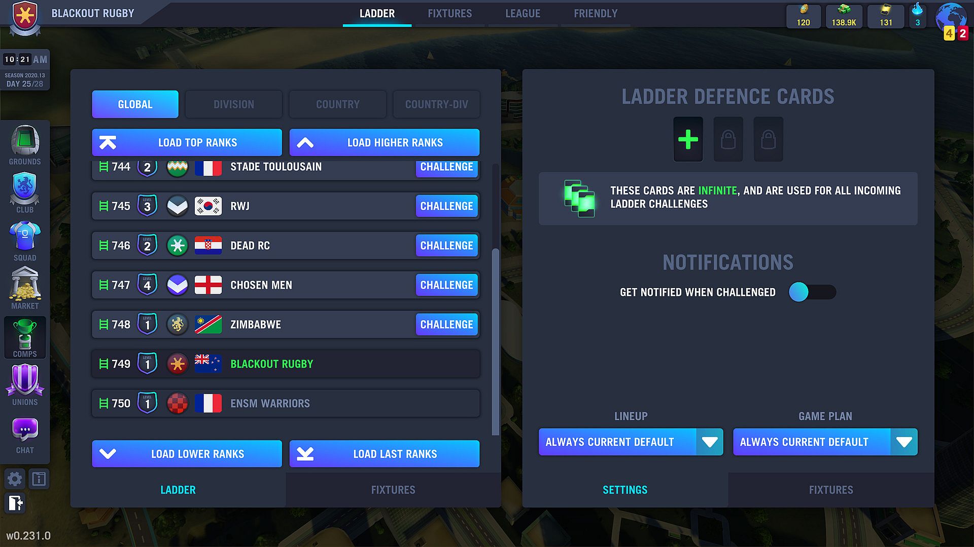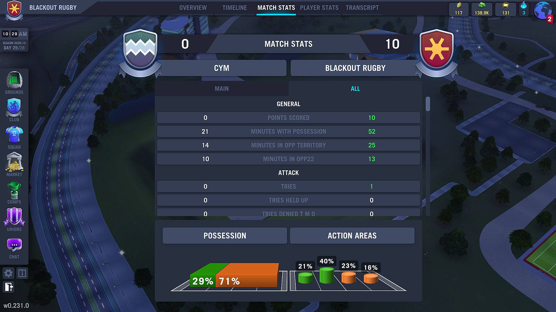 Blackout Rugby is the most in-depth rugby management simulation ever made. Create, control and shape the destiny of your own rugby club in a quest for silverware and glory. Compete against friends and strangers in a massive multi-player rugby world, where your every decision can mean the difference between victory and defeat.