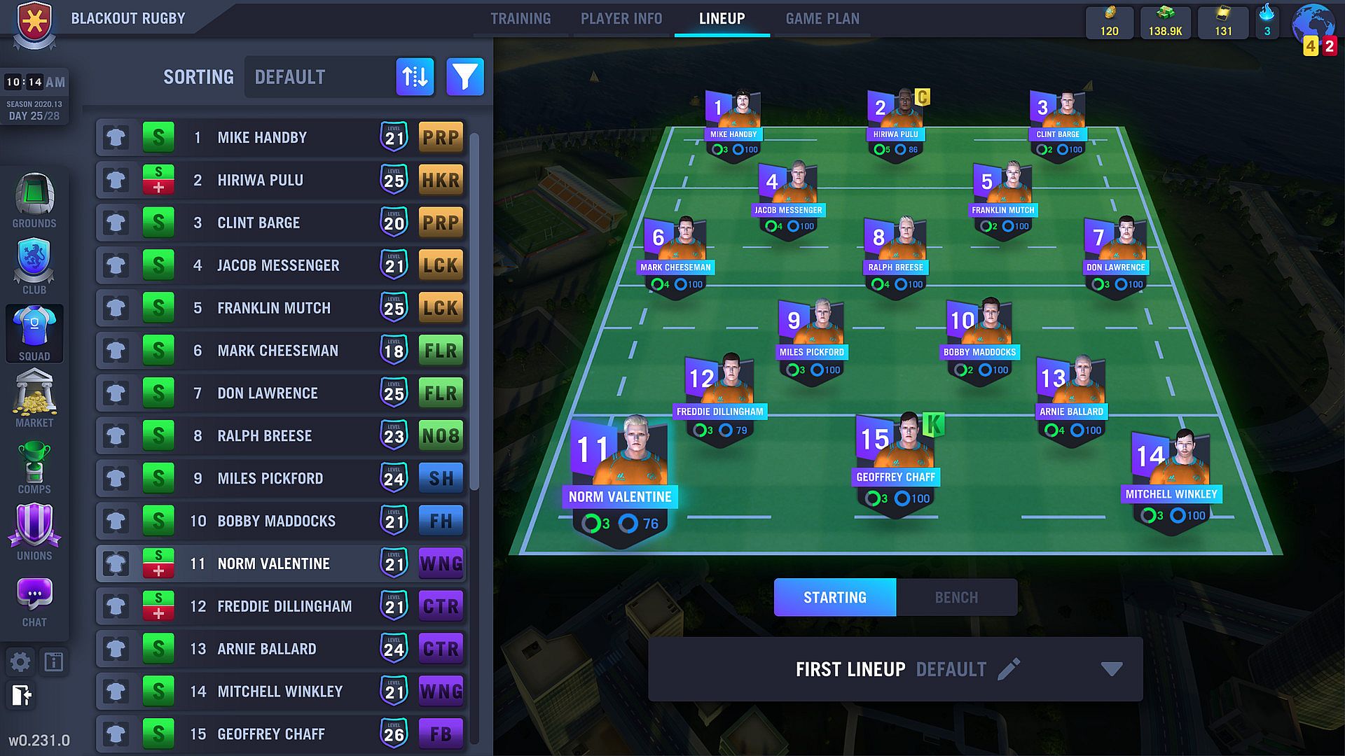 • Set and save your line-ups, bring on substitutes from your bench and create positional depth charts to help organize your squad.