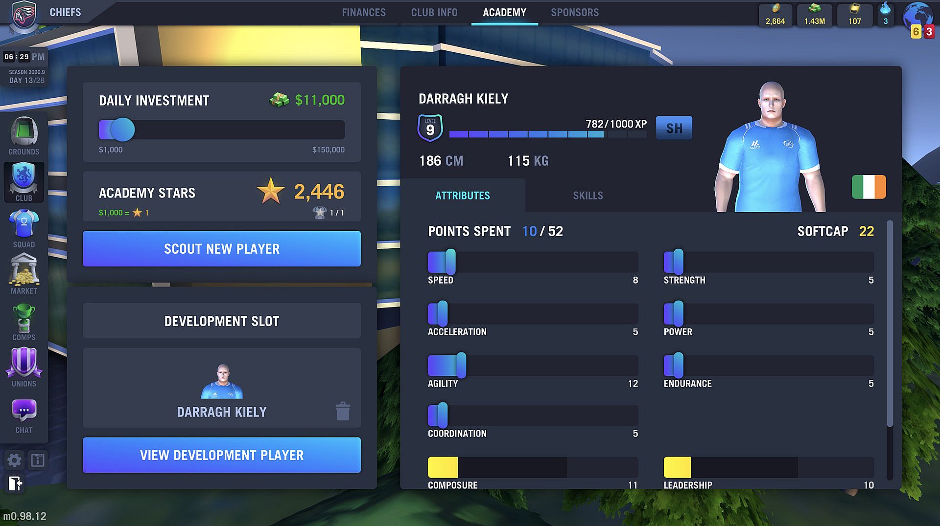 • A youth academy system that allows you to take a raw talent and turn them into a promising young superstar.