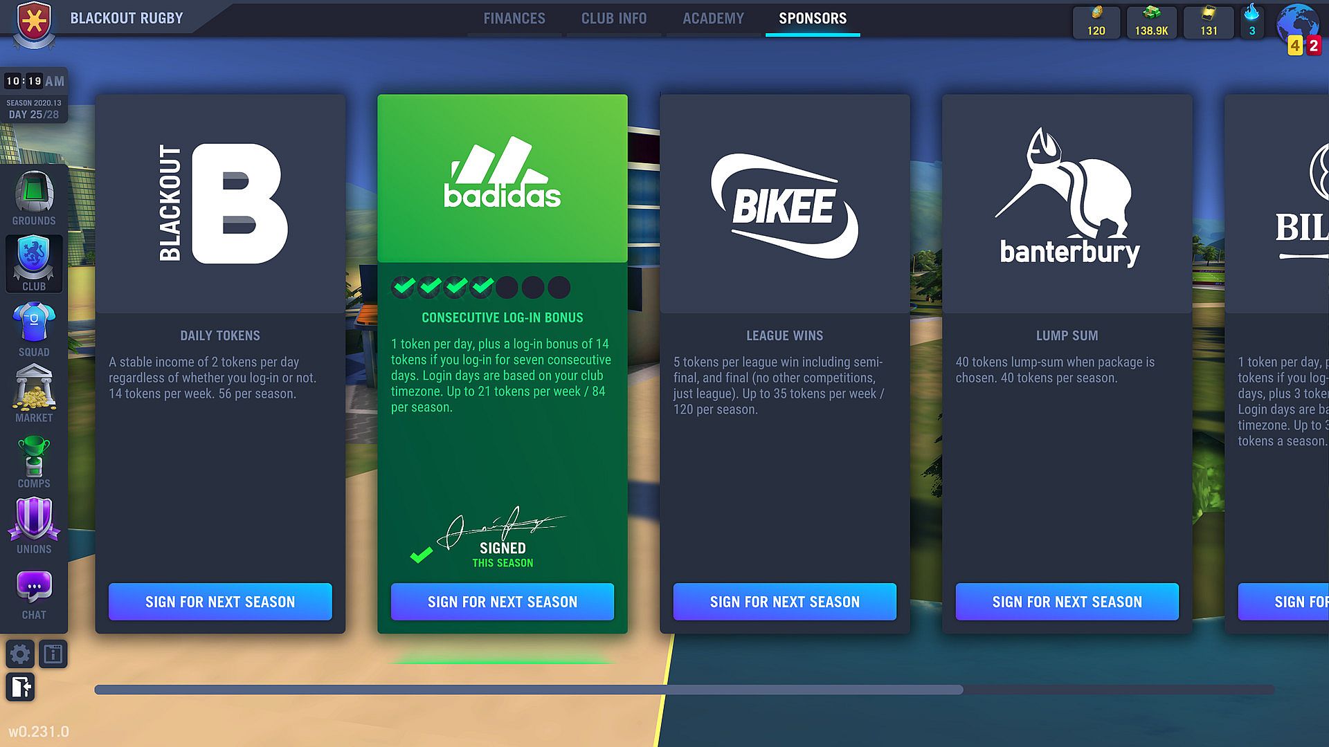 • A balanced finance system that allows you to concentrate on the things that actually bring your club success whilst leaving the boring mundane money counting to your club’s board.