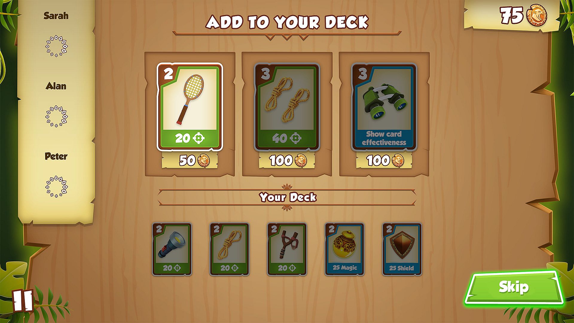 Earn gold coins during every encounter and spend them on new cards for your deck. You’ll get better, stronger and faster as Jumanji increases the pressure. Make your choices and meet the jungle head on.